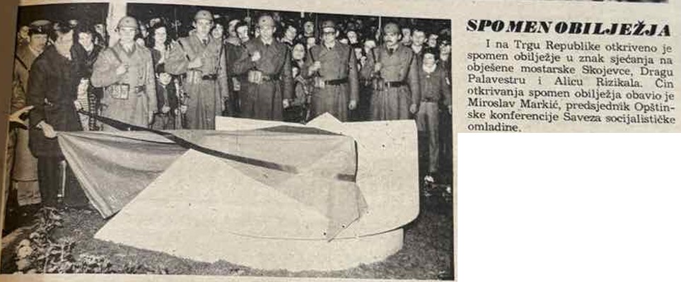 Photos: S. Demirović (2018), https://www.youtube.com/watch?v=zl3W0gy7x5I&ab_channel=KnjOrg; https://www.xiwl.com/w/index.php/Mostar_-_Spomenik_Aliji_Rizikalu_i_Dragi_Palavestri ; https://znaci.org/fotografija.php?br=10620; https://znaci.org/fotografija.php?br=10559