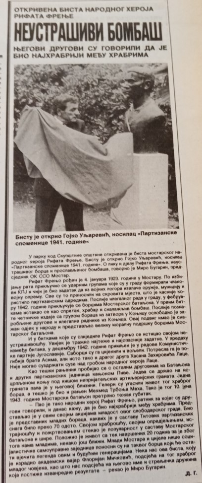 Posmrtni ostaci Asima Frenje su nakon rata preneseni i sahranjeni na Partizanskom spomen-groblju u Mostaru. Izvor: arhiv Radmila Brace Andrića.
