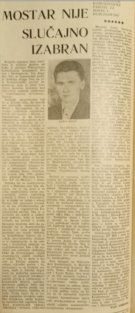U prilogu je kratka biografija narodnog heroja Karla Batka (Refik Hamzić, “Mostarci narodni heroji Jugoslavije“, 1986. Izvor: CIDOM)