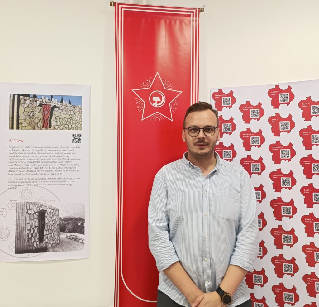 Detalji sa izložbe “60 godina Partizanskog spomen groblja” održane u Mostaru 2025. godine, postavke i predavanje Roberta Kepića.
